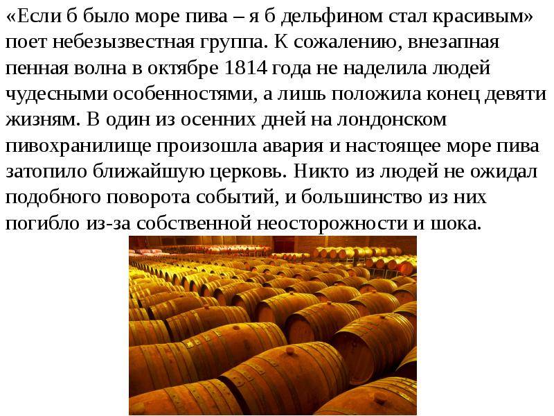 25. Исследовательская дисциплина, занимающаяся изучением пива и особенностей его производства, называется зитологией — от греческого zûthos, что означает «пиво», и logía — «наука».