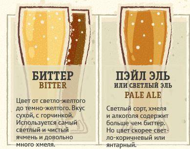 (Биттер/горький). Он не горький, а сладковато – фруктовый, в нем просто раньше других применили хмель, вот и назвали «горьким». Его оттенки могут колебаться от бронзового до темно – медного. Самый популярный. В Англии 15 века присутствовал в обеденное время на каждом столе.