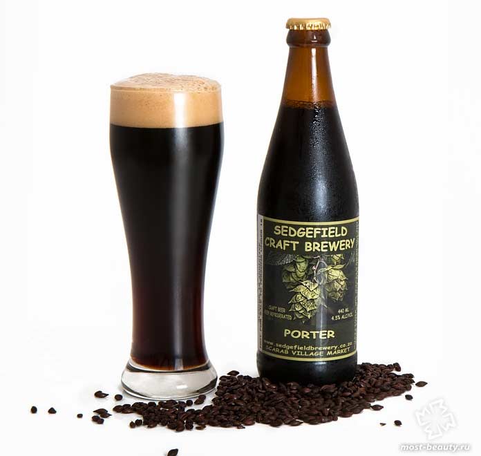 - Портер – благодаря тёмному солоду и жжёному сахару в своём составе имеет чёрный оттенок и винный привкус со сладковатым оттенком. Крепость достигает 10%. Этот тёмный эль появился в Лондоне, путём смешения сразу трёх сортов: светлого, тёмного и лёгкого.