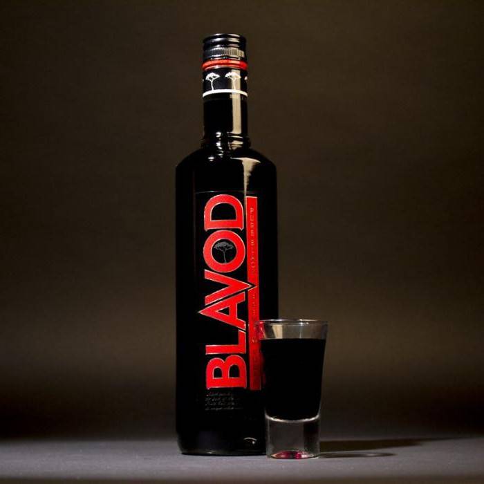- Чёрная вдова. Высокий бокал наполняется льдом (3 шт.), клюквенный сок в объёме 100 мл составляет нижний слой коктейля, сверху по барной ложке наливаются 60 мл Blavod. Коктейль не перемешивается.