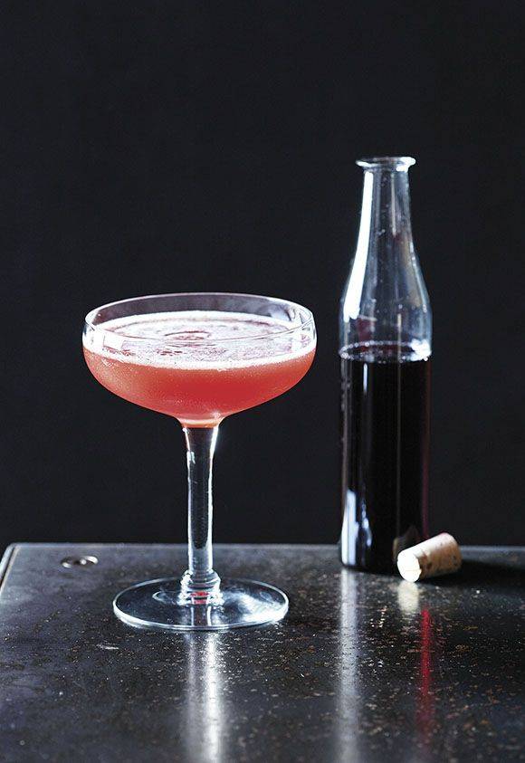 45 мл кальвадоса 20 мл свежевыжатого лимонного сока 15 мл гренадина Шейк. Сервируйте в коктейльном бокале с каемкой из сахарной пудры и гренадина, украсьте завитком кожуры лимона.