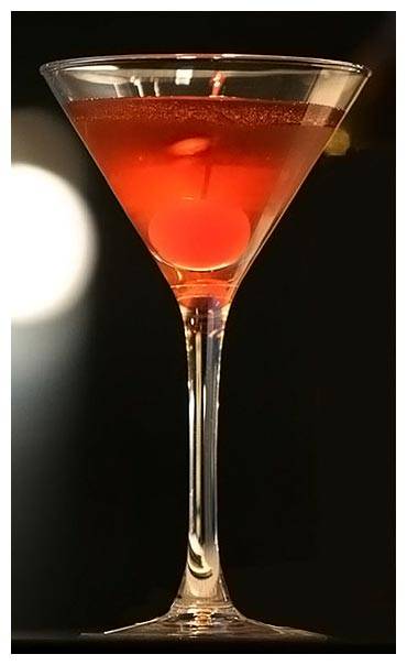 Помести все ингредиенты в стакан для смешивания коктейлей, наполненный льдом. Хорошо перемешай и процеди в стакан «олд фешен», наполненный льдом. Финальный штрих — укрась вишней.