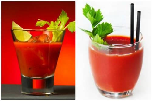 - Влить в стакан водку и сок помидоров. Это базовая смесь напитка. Добавить к ней сельдерейный сок. Соль с порошком сельдерея сделает вкус этой овощной культуры более ярким.