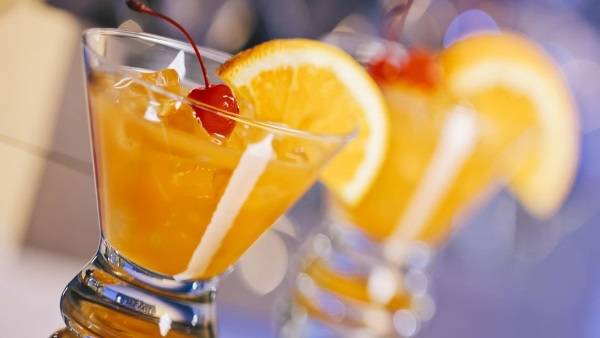 Состав: водка (15 мл), ливёр Гальяно (15 мл), апельсиновый сок или спельсиновый сорбет (50 г), апельсин