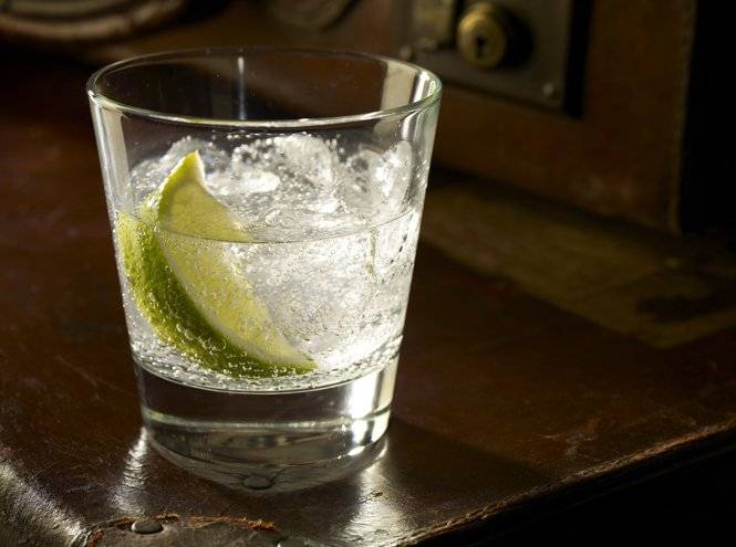 Состав: джин (50 мл), тоник (150 мл), лайм, лёд в кубиках