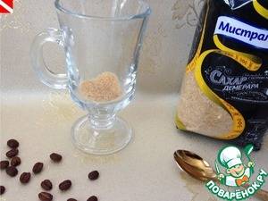 • В разогретый бокал выливается горячий кофе. Добавляется сахар.