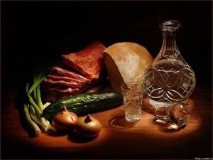 - Следующий вдох – занюхивание кусочком ржаного хлеба. Ручаюсь, его аромат никогда не бывает таким благоуханным, как после опрокинутой первой стопочки!