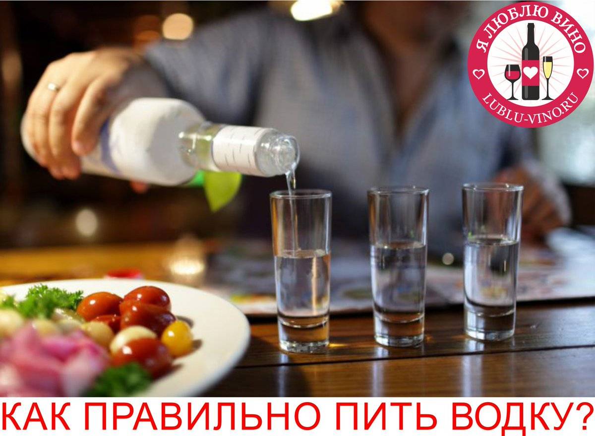 Водку лучше пить из 50-ти граммовых рюмок залпом. Сначала нужно глубоко выдохнуть, затем сделать глоток на следующем вдохе. После этого снова глубоко выдохнуть, избавляясь от паров спирта, и поднести к носу кусочек ароматного хлеба чтобы «занюхать» выпитое.