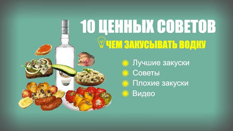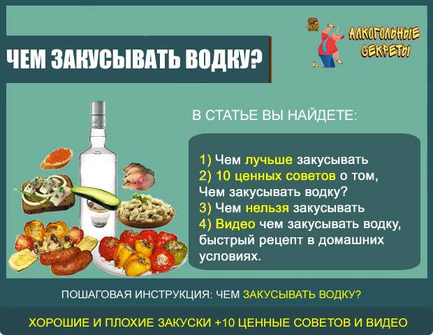 Водка хорошо сочетается с множествами вариантов закусок, от «скромного» черного хлеба с маслом до «царской» пары в виде икры. Однако есть ряд продуктов, которые врачи настоятельно не рекомендуют есть во время употребления водки.