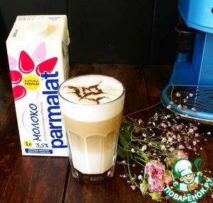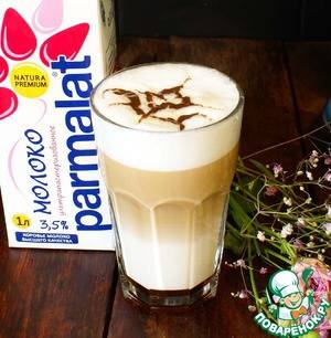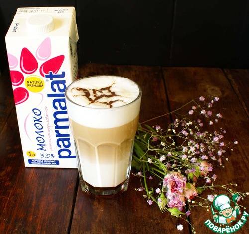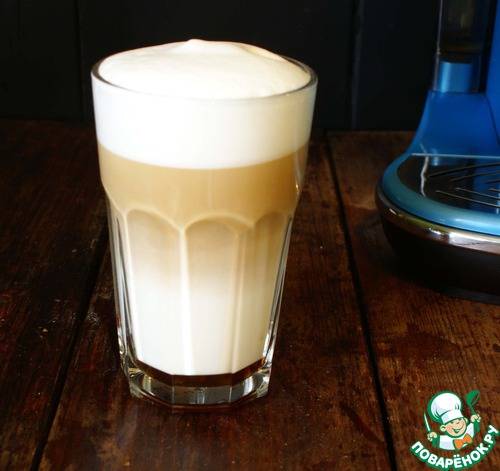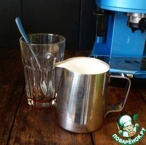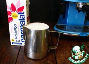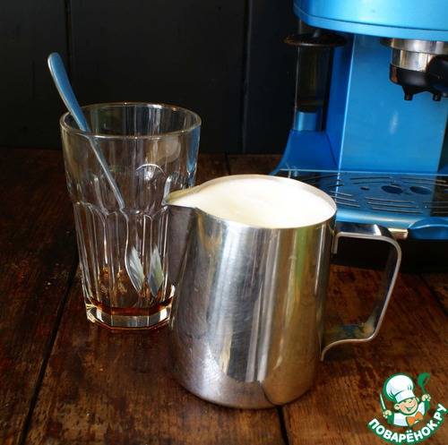 При помощи ложки с длинной ручкой выливаем аккуратно вспененное молоко.