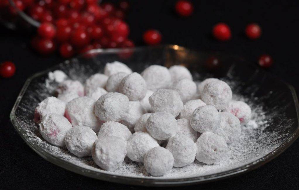 - Старайтесь крутить миску так, чтобы ягоды постепенно покрывались пудрой полностью. По одной вынимаем клюкву из пудры и выкладываем на тарелку.