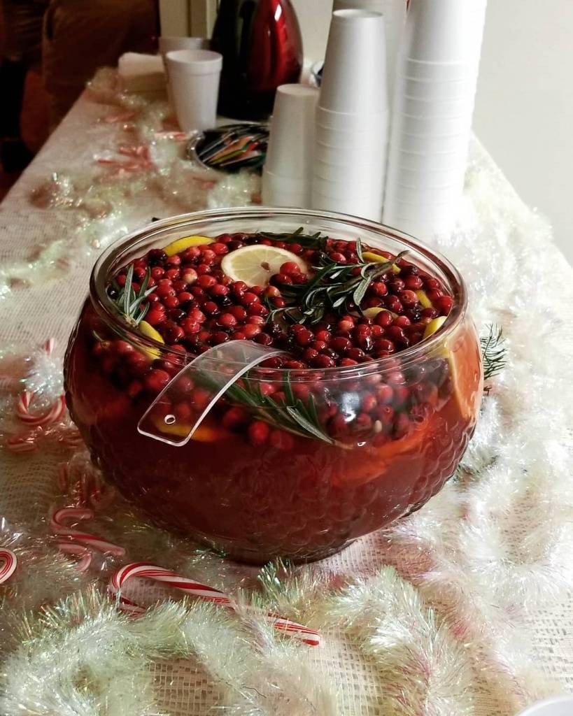 От клюквенно-малинового до клюквенно-вишневого — практически любая фруктовая смесь отлично подойдет для этого пунша.