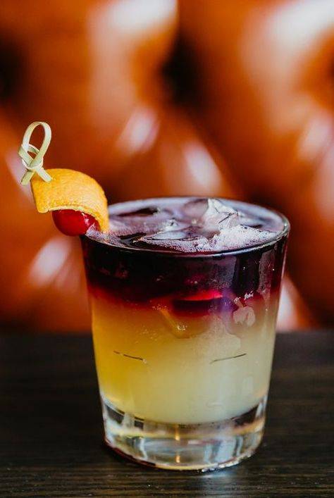 Теперь, чтобы добиться двухцветного эффекта, следует медленно и осторожно влить несколько капель сиропа «Гренадин». Коктейль можно украсить долькой апельсина или ягодой клубники