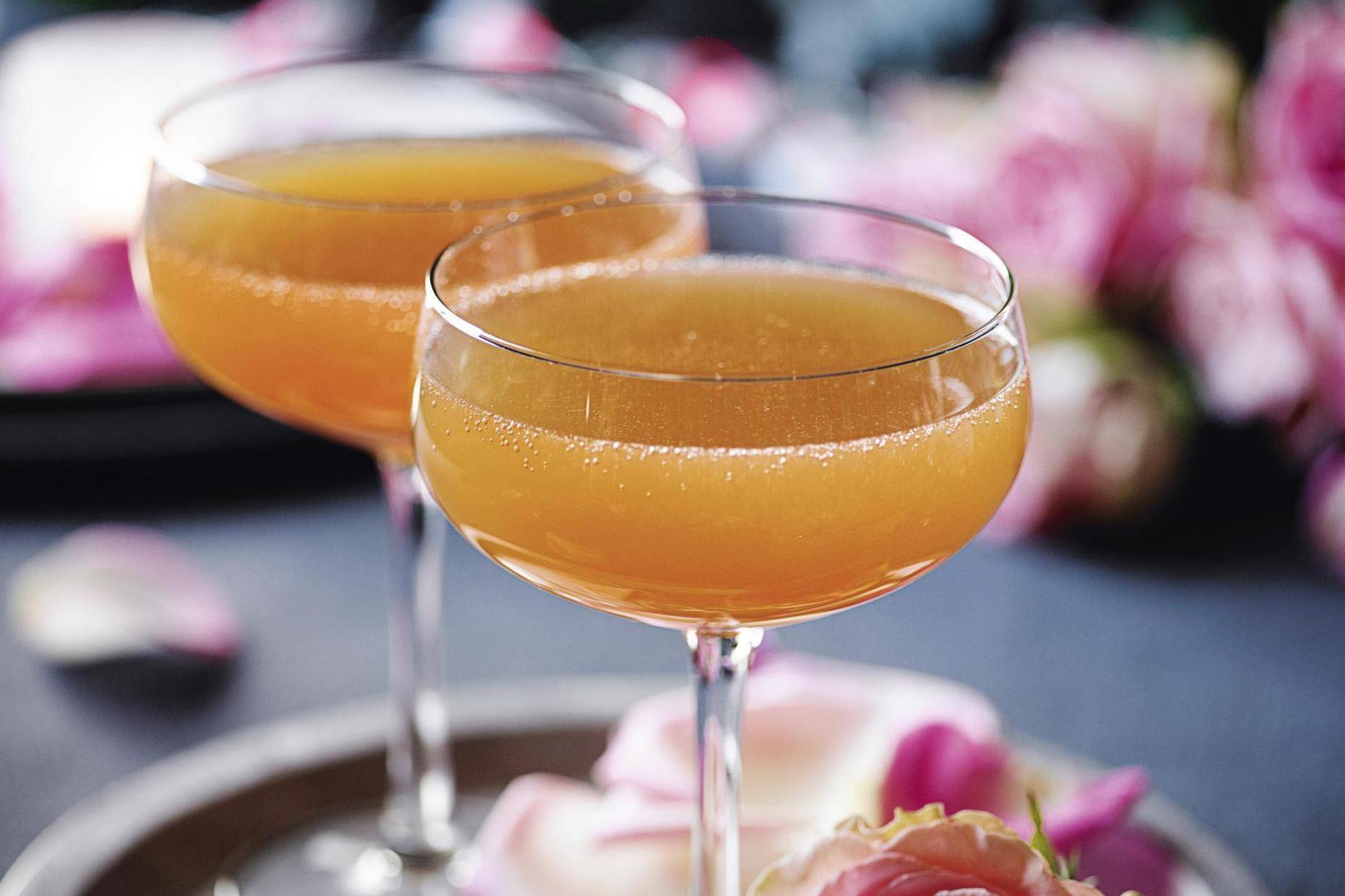 Для приготовления смеси в красивый широкий бокал заливают 50 грамм напитка и 15 грамм пюре из персиков. До краев следует налить шампанское или другое игристое вино белого цвета.