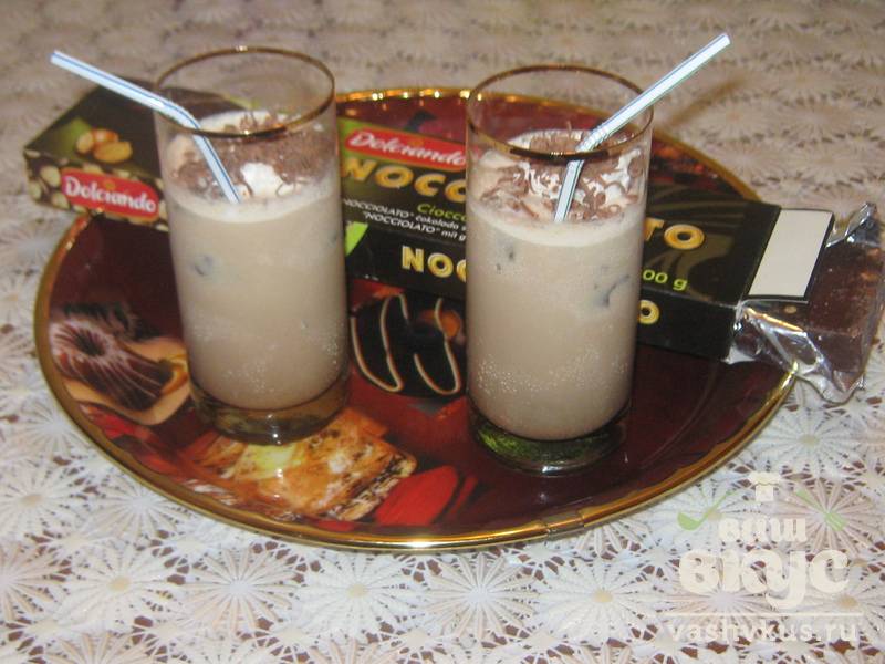 Все ингредиенты смешать в блендере. Перелить в заранее подготовленные емкости. При желании можно присыпать коктейль тертым шоколадом.