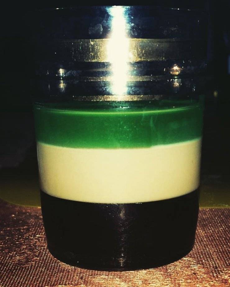 Процесс требует особой аккуратности, чтобы не допустить смешивания слоев. Подают с соломинкой.
