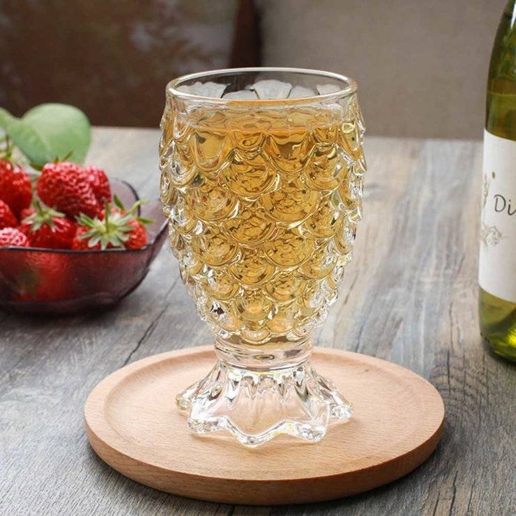 «Флиртини». Состав: водка, шампанское, ананасовый сок. Смешиваем 15 мл водки, 30 мл сока, 15 мл ликёра и несколько кусочков ананаса в шейкере с добавлением нескольких кубиков льда. Всё хорошо перемешиваем и переливаем через сито в бокал для мартини. Добавляем 90 мл игристого напитка и дольку ананаса. Для декора можно использовать вишню;