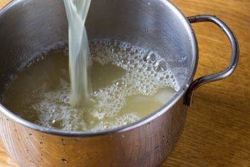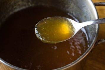 - Когда сироп дойдет до кипения, огонь можно отключить и снять емкость с плиты.