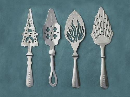 Кроме бокала, необходимый аксессуар для питья абсента – ложка. Ложка обязательно нужна, если вы собрались употреблять напиток с сахаром. При этом, используется особый прибор с отверстиями. Рафинад кладется на ложку и поджигается. В итоге, сахар плавится и стекает в рюмку с абсентом.
