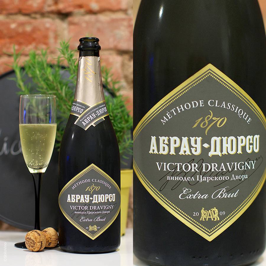 - Виктор Дравиньи, шампанское экстра брют. Для изготовления элитного игристого вина используются специальные дрожжи, а выдерживается эстра брют 5 лет. В конечном вкусе напитка преобладают нотки свежеиспеченного хлеба, айвы, яблок.