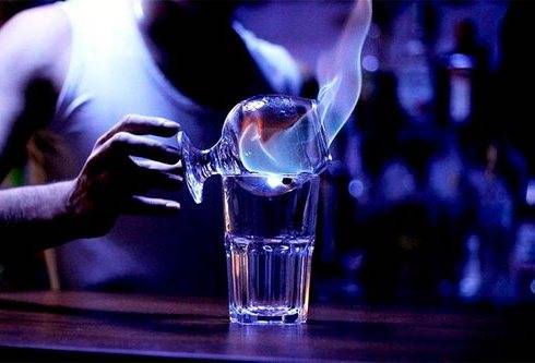 Начинающему бармену справиться с задачей не просто. Ликер наливают чтобы в рюмке получилось два слоя.