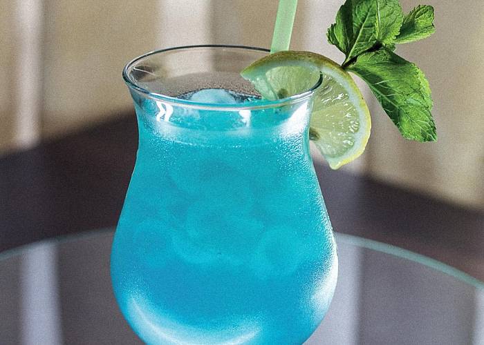 Оригинальный голубой цвет и приятный вкус делают этот коктейль лидером нашего рейтинга. Его должен попробовать каждый.