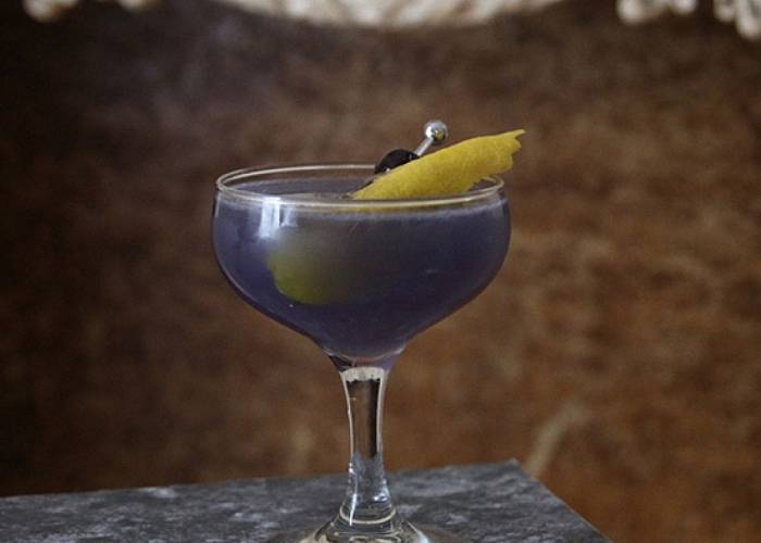 Приготовление коктейля с «Блю Кюрасао» «Фиолетовый Геккон»