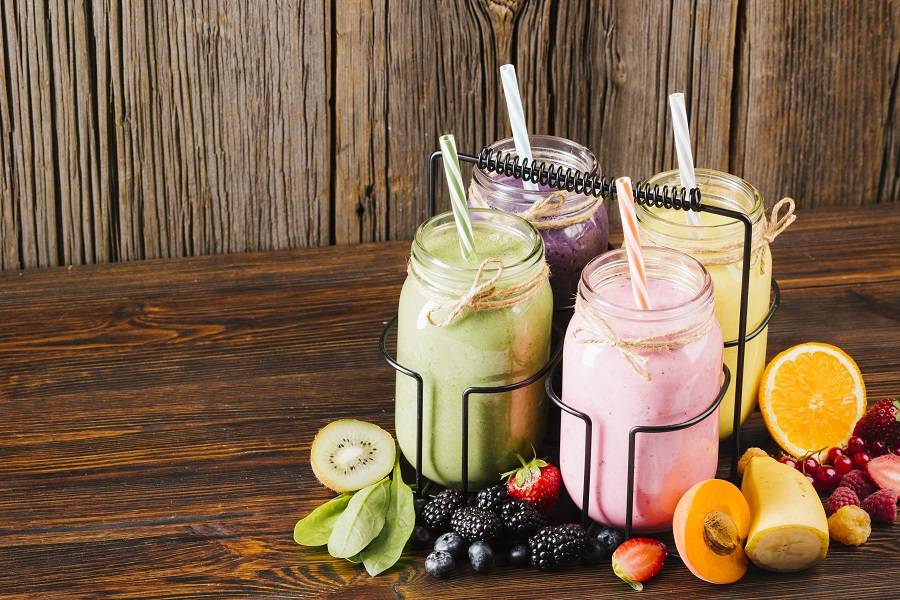 • В качестве жидкой основы чаще всего используют молочные продукты. Молоко сочетается не со всеми плодами, поэтому лучше заменить его кефиром или йогуртом. Тем, кто следит за своей фигурой, нужно выбирать нежирные варианты – до 1,5-2%. Вегетарианцы предпочитают растительное молоко: кокосовое, миндальное, овсяное. Можно также добавлять свежевыжатый сок, зеленый чай, травяные отвары, воду.