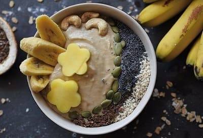 Карамельный cмузи-боул, миндальными орехами и бананом