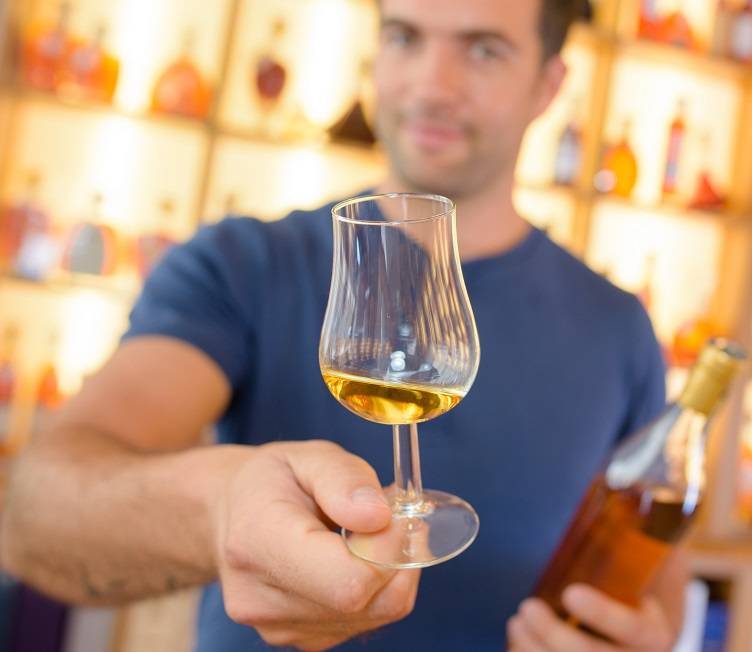 Но важно поворачивать его медленно, не сильно тревожа напиток. Коньячный бокал позволяет почувствовать на расстоянии около 5 см от края легкие ванильные ароматы, у самого края — более насыщенные (фруктовые, цветочные), а внутри — тонкие ароматы выдержки