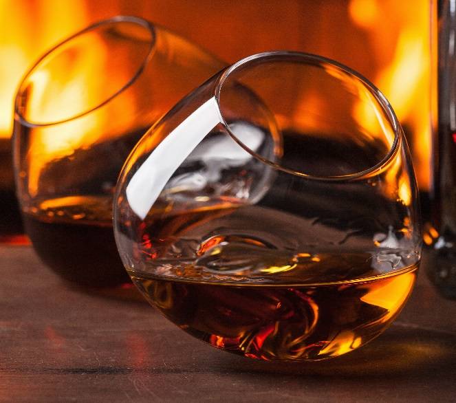 Если вы хотите убедиться в качестве напитка, наклоните снифтер на 45° и медленно поверните так, чтобы при возврате его в вертикальное положение коньяк стекал по внутренним стенкам. Медленно сползающие густые потеки — признак напитка высокого качества.