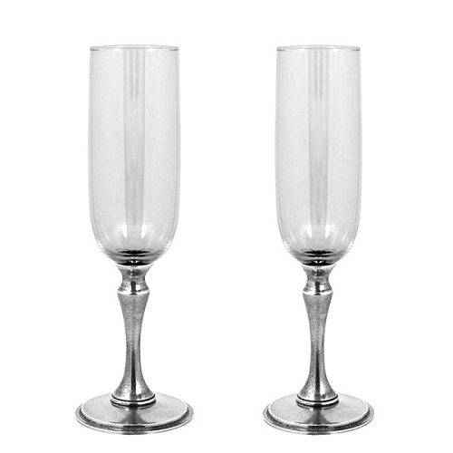 Бокал оловянный – смотрится изысканно и утонченно. Идеальный вариант для подарка. Часто продаётся парой или набором. Подходит для вина и шампанского. Выпускается из калёного стекла с оловянными элементами, украшенными золотыми или серебряными вкраплениями.