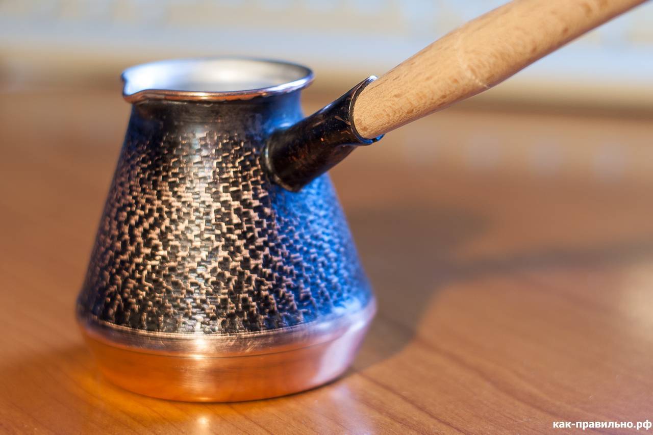 Более привычными и распространенными являются турки, изготовленные из толстостенной меди. Самые лучшие представительницы этого семейства изготавливаются только путем ковки или чеканки. Среди основных положительных свойств такой посуды можно назвать прочность и неприхотливость в эксплуатации.