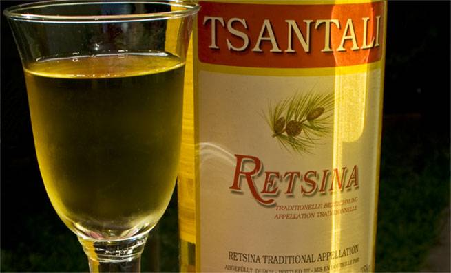 Пожалуй, наиболее известное греческое вино, история которого восходит еще к очень глубокой древности. Название вина происходит от греческого слова «смола», что уже позволяет судить об использовании этого ингридиента в процессе производства. Традиция использования смолы связана с применением у древних греков амфор и необходимостью их герметично запаковывать. Смесь гипса и смолы считалась для этого идеальной: так вино дольше хранилось и насыщалось приятным ароматом. Помимо этого, смолу нередко добавляли в само вино: это предотвращало скисание и придавало напитку целебных свойств. В настоящее время, чтобы придать вину характерный аромат и вкус смолу добавляют в процессе брожения, а по окончанию оного удаляют.