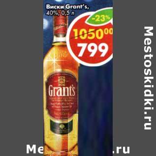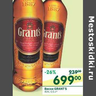 «Грантс» относится к —купажированным виски—. Это ещё один крепкий напиток, который подарила миру Шотландия. В 1887 году Уильям Грант, заручившись поддержкой многочисленной семьи, открыл завод по производству скотча. Его сын Чарльз стал первым продавцом и по совместительству рекламным агентом. Прежде чем производство приобрело первых клиентов, он связался с огромным количеством фирм, предлагая продукцию «Грант». Чуть позже Чарльз отправился в путешествие, чтобы наладить экспорт скотча, и к 1914 году представительства находились уже в 30 разных странах. Сегодня «William Grant & Sons» занимает 4-е место по производству виски.