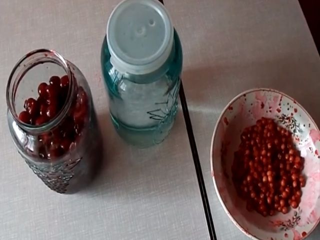Каждые три дня подходим к баночке и встряхиваем ее раза два-три в день. Когда положенный срок истечет, открываем банку и отфильтровываем жидкость, отделив ее таким образом, от ягод. Жидкость переливаем в отдельную емкость и убираем до поры, до времени. Ягоды же засыпаем сахаром на две недели для вырабатывания сока. Затем снова профильтровываем, ягоды при этом можно уже будет выбросить. Полученный же сок смешиваем с ранее слитой водкой. Разливаем по бутылкам, закрываем и убираем на три месяца. Храним уже в холодильнике. Через три месяца наливка будет готова окончательно и нам остается только попробовать, что получилось.