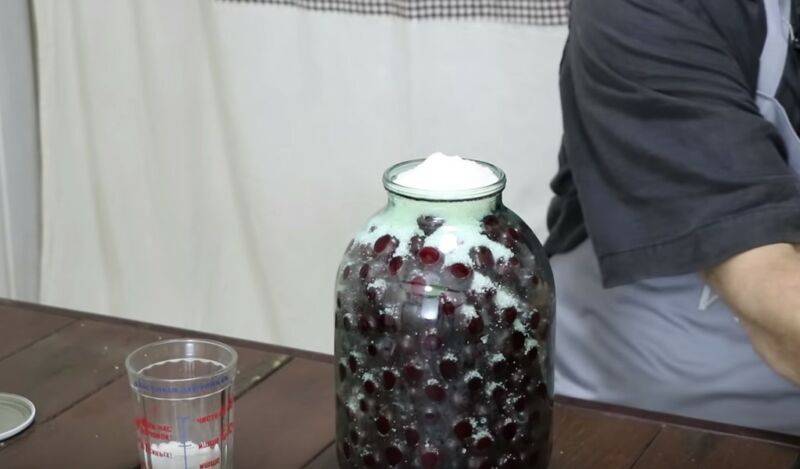 - Добавляется алкоголь, вишня перемешивается и настаивается от месяца до трех.