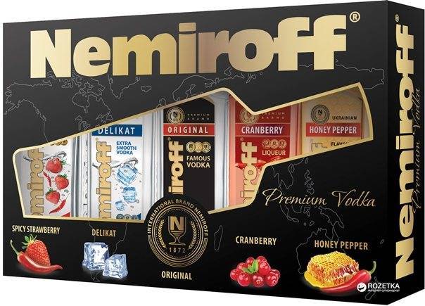 Чего уж говорить, эта компания поистине выдающаяся. Она работает по весьма широкому спектру и имеет на своем счету более 20 видов наименований алкогольной продукции. Ареал распространения такого продукта, как водка Nemiroff, простирается от Старого до Нового Света. Среди основного ассортимента выделяют горькие настойки, ликеры, десертные напитки. Применительно, что все упаковывается соответственно содержанию. В торговой сети этого бренда можно найти емкостью от 0, 25 до 1, 75 литра.