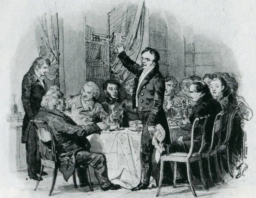 Членом этого дружеского общества был и поручик лейб-гвардии Гусарского полка Петр Павлович Каверин (1794-1855), известный кутила, повеса и бретёр. Да-да, тот самый Каверин, который по воле автора романа в стихах ждал Евгения Онегина в ресторане Талона, чтобы распить с ним «вино кометы»!2.