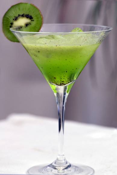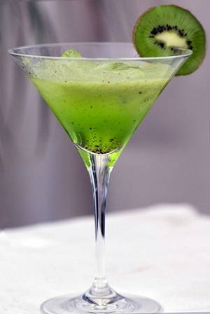 - Подготовить необходимое оборудование для приготовления и подачи коктейля: блендер, ситечко, коктейльная рюмка или бокал для мартини.Тщательно вымыть киви, очистить от кожуры и порезать на кусочки.