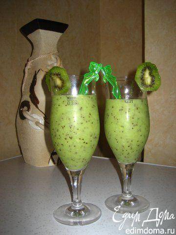 - Украсить можно дольками киви и веточкой мяты. Напиток густой, поэтому его не употребляют через трубочку.