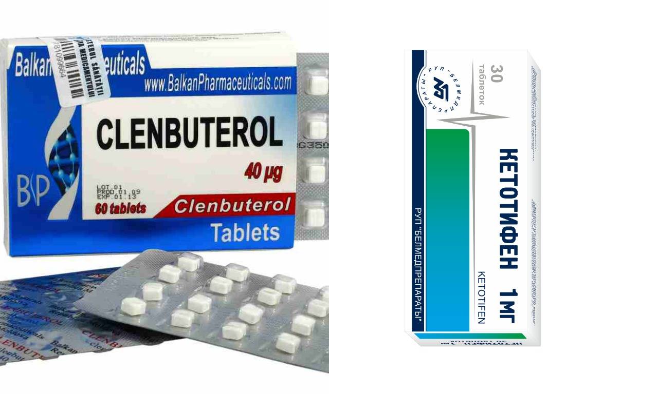 Для максимального ускорения эффекта похудения рекомендуется пройти курс «Кленбутерола» с противоаллергическим «Кетотифеном». Это медпрепарат, блокирующий аллергические реакции в организме и приступы астмы. В совокупности курс «Кленбутерола» с таблетками «Кетотифена» дает отличный эффект. Первый – способствует сжиганию жиров, второй препарат – уменьшает негативные проявления первого лекарства. В итоге, человек, принимающий сразу два средства перестает страдать от: