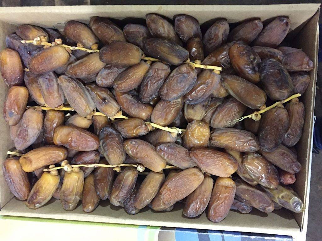 3. Иранские финики в коробке 500 грамм, недорогой продукт полужестких сортов, стоимостью от 400 до 600 рублей за 1 кг.