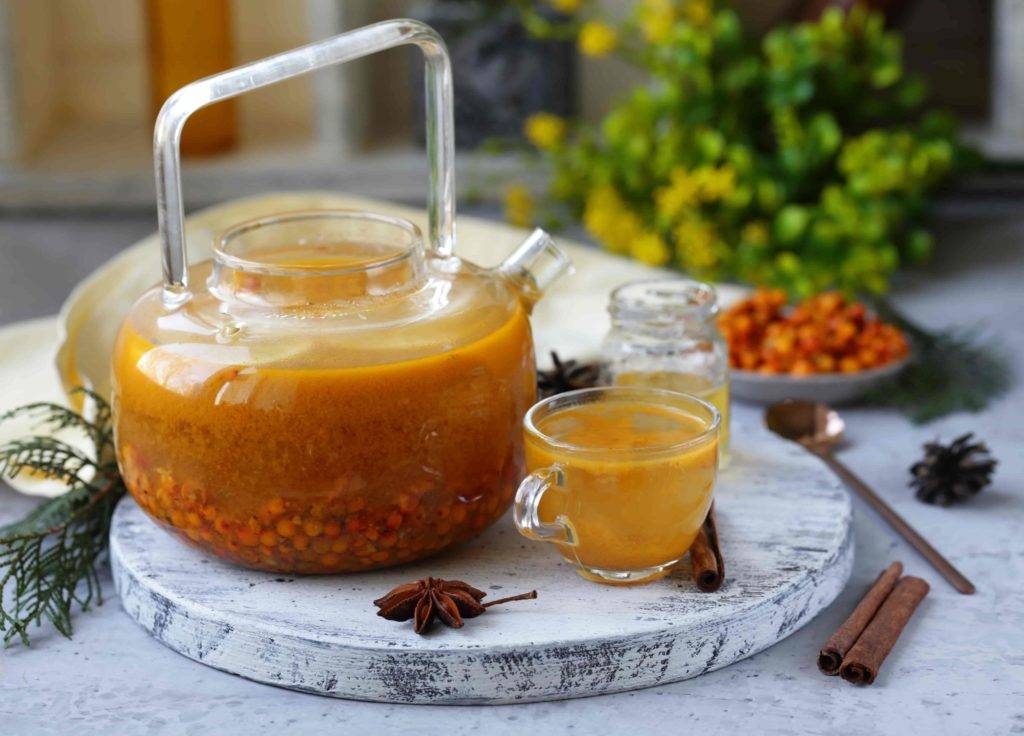 В данном случае лучше использовать высушенные плоды, которые обязательно проварить в кипятке. Чтобы заварить чай из облепихи, необходимо развести 2 ст. л. сырья на стакан воды, томить на умеренном огне 12 минут. Принимать только в свежем виде, каждый раз готовить новую порцию лекарства. Такой напиток обладает полезными свойствами: укрепляет иммунитет, утоляет боль, улучшает качество сна, успокаивает нервы.