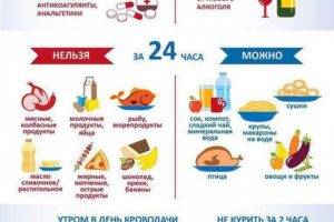 Стоит заметить, что употребление алкогольных напитков возможно только за 48 часов до процедуры. А прием лекарств, содержащих аспирин и анальгин, за 72 часа.
