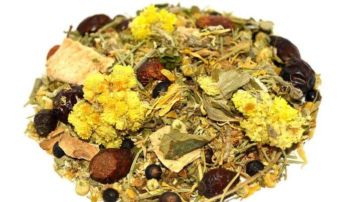 Процессы выведения токсинов из организма стимулируются входящим в состав сбора пектином. Это вещество способствует очищению сосудов от холестериновых бляшек. Регулярное употребление чая стимулирует образование эритроцитов, что улучшает состав крови.