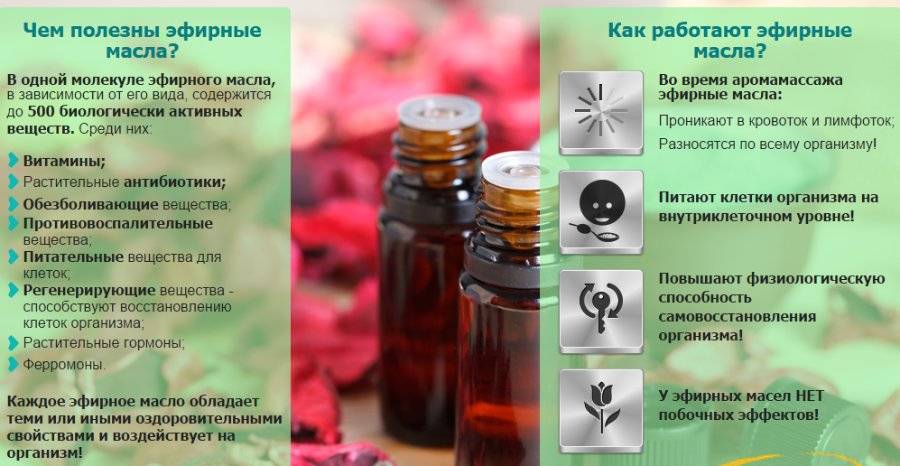 Это масло ромашки, розы, мирры, мандарина, сандала, грейпфрута, майорана, мелиссы, жасмина, пачули, валерианы, нероли, лимона, льняное масло и другие.
