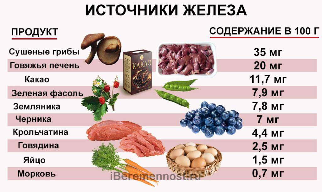 Таблица — Продукты для повышения гемоглобина у беременных: