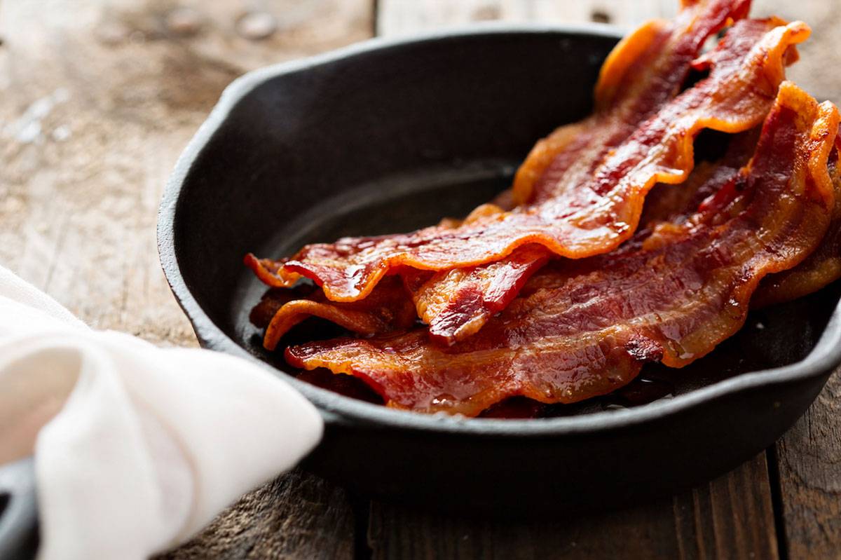 К сожалению, колбасу, ветчину и бекон жарить не рекомендуется — какое бы масло вы не использовали, при нагревании в этих продуктах повышается количество трансжиров, приносящих вред организму. Кроме этого, правильное питание в принципе подразумевает ограничение колбасы в рационе.