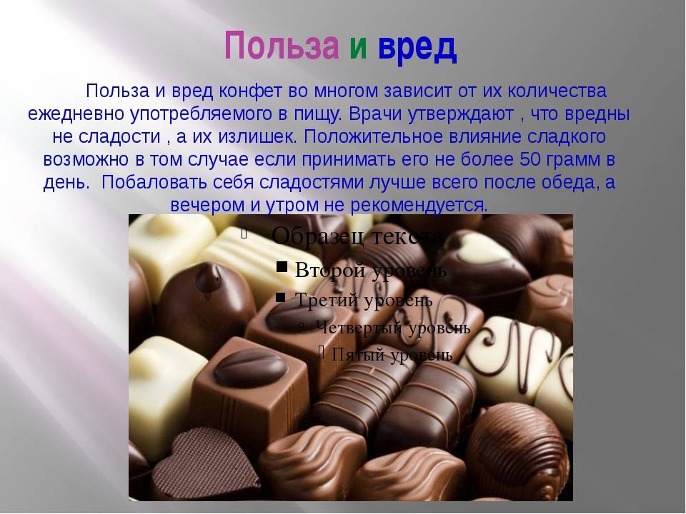 Положительное и отрицательное влияние шоколада на организм человека – тема исследований учёных всего мира. Всё большее количество результатов подтверждает пользу и разрушает некоторые стереотипы о вреде шоколада для организма человека.